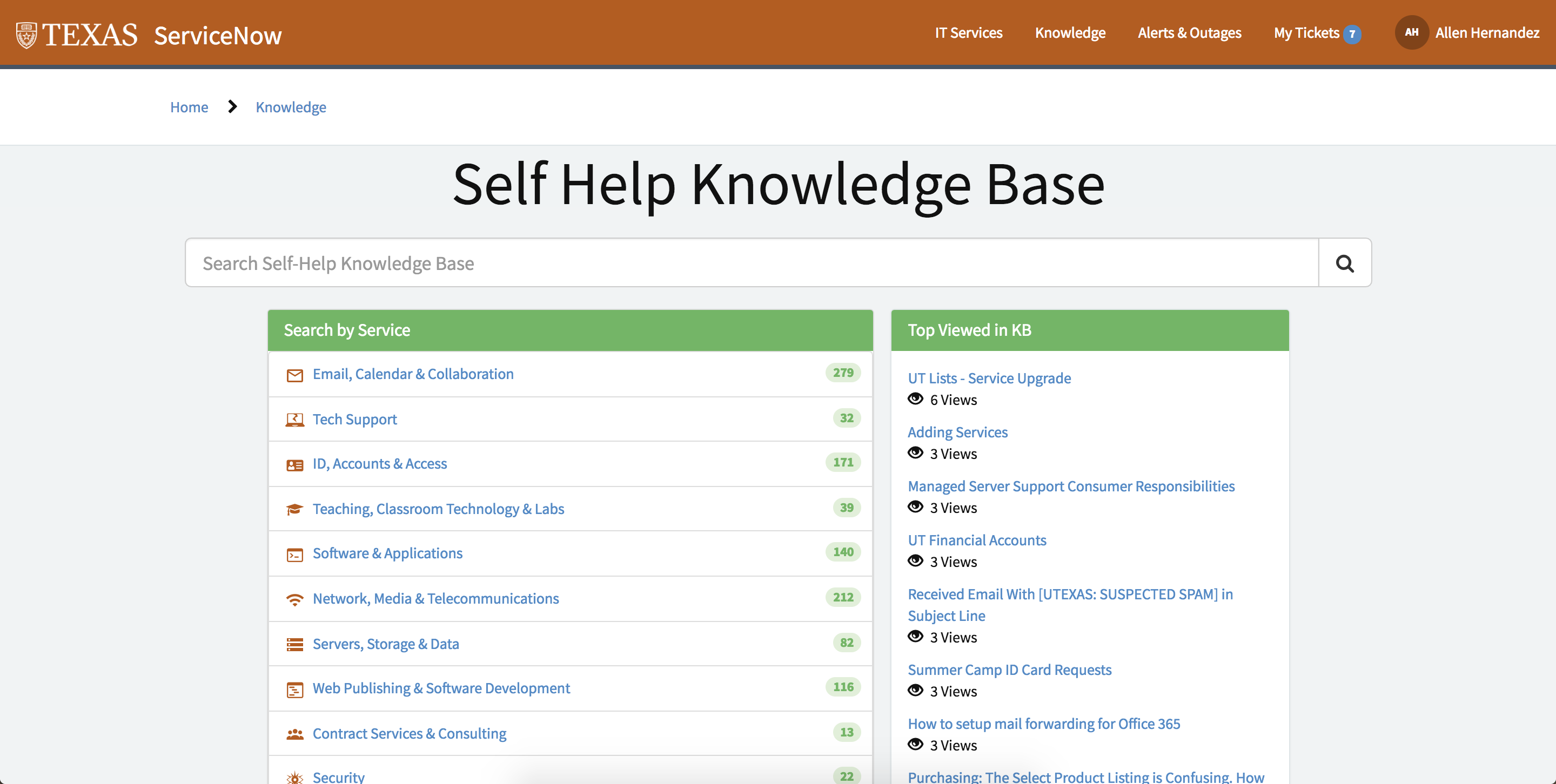 You can search for knowledge articles in ServiceNow using either the Global Search or Through the Knowledge section.  Please see below for information on both methods.