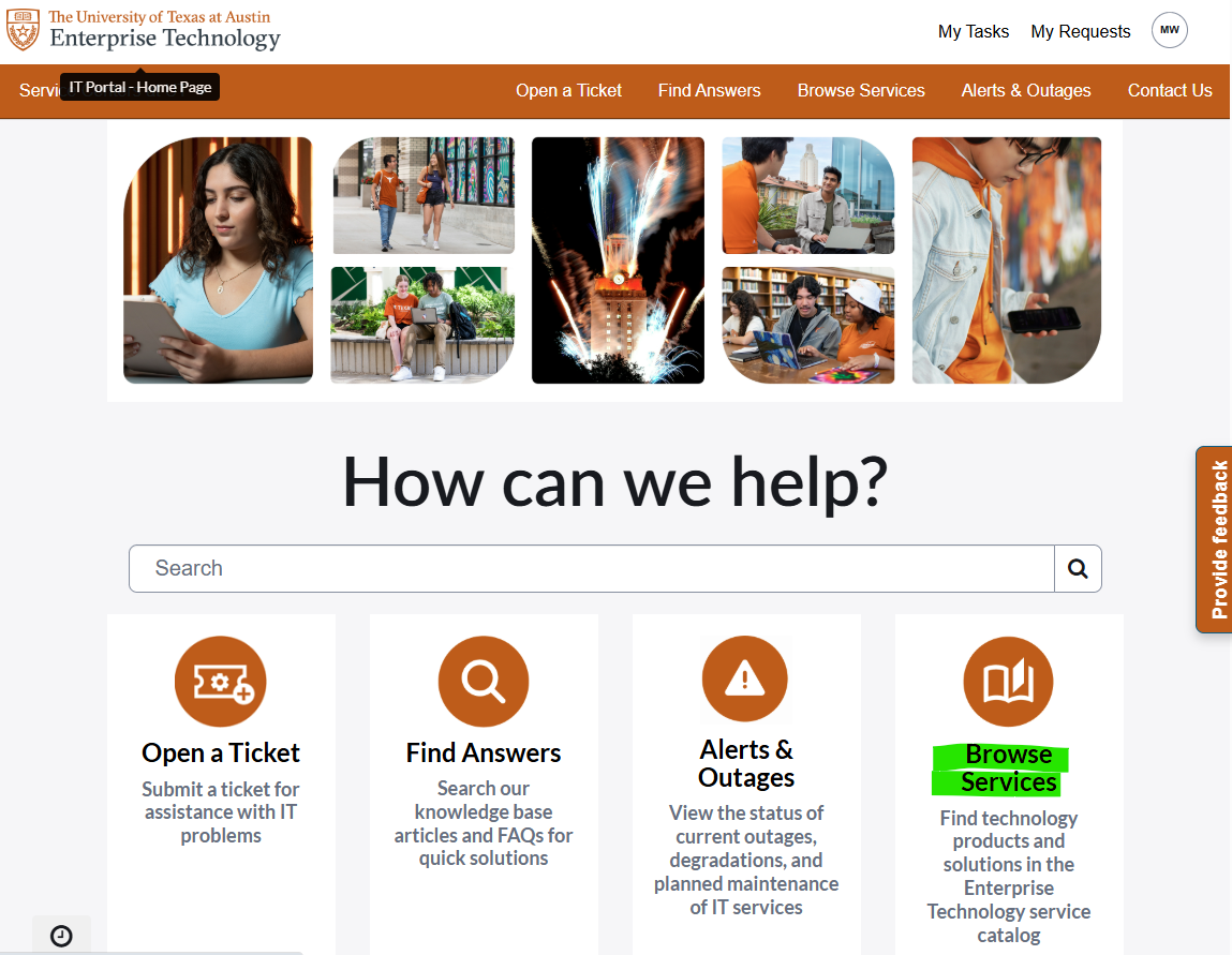 • Navigate to the service page using Search or through the Browse Services link.