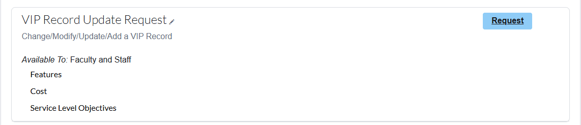 • Use the Request button to access the request form for a service offering