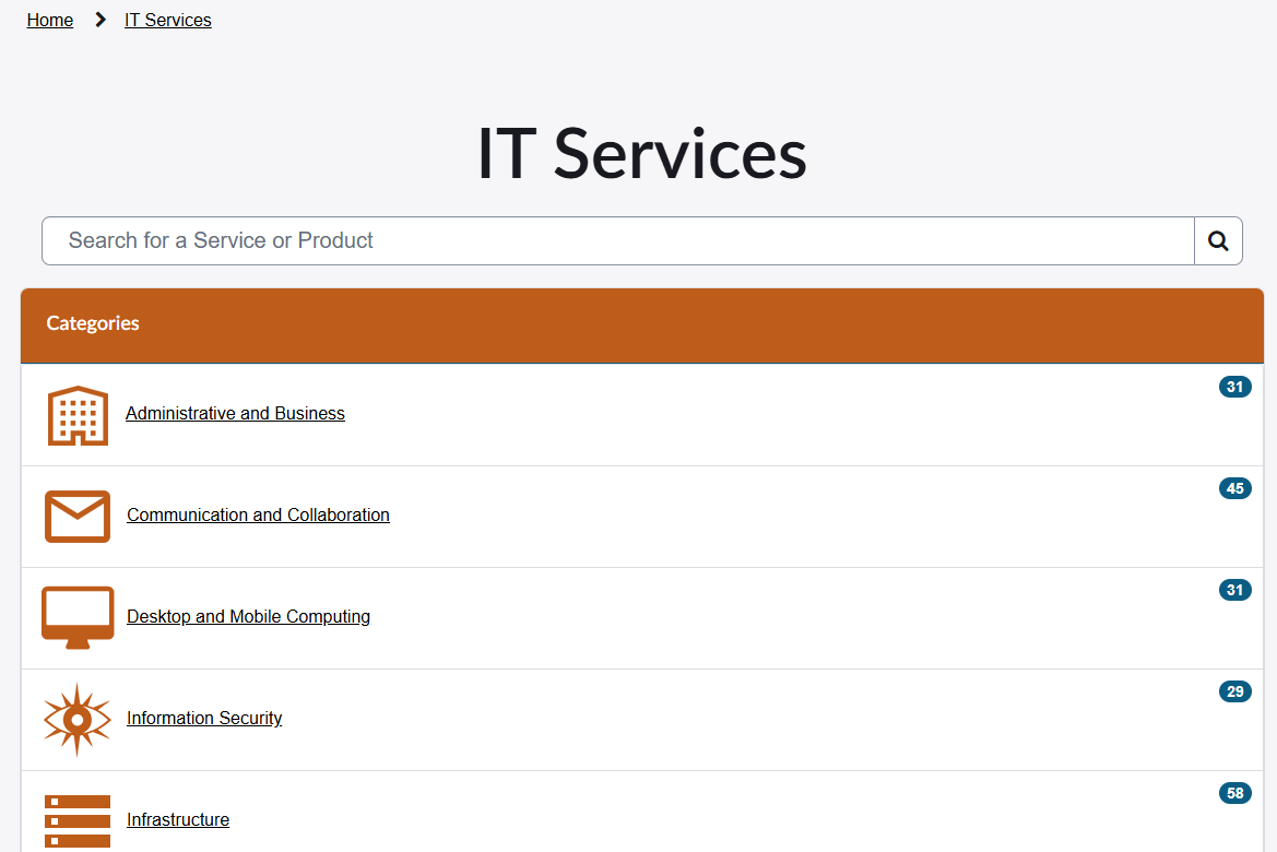 • Select a Service Offering to view how to request that service.