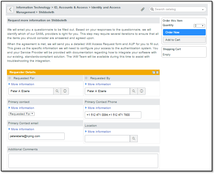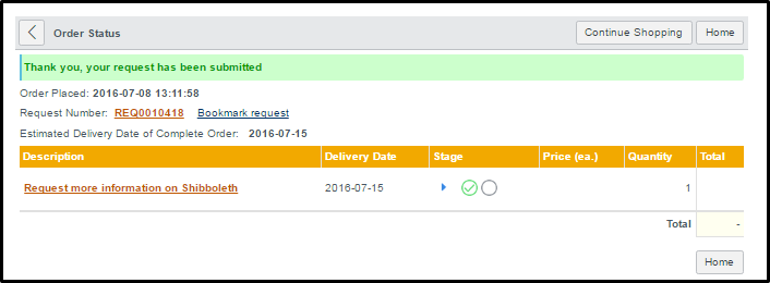 - Select Order Now, or Add to Cart > Continue Shopping to add more request items to cart