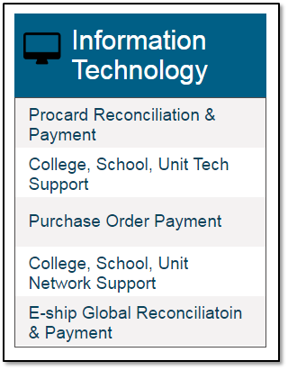 - If using the Service Catalog, select the high level category for your service (IT, Finance, HR, or Facilities)