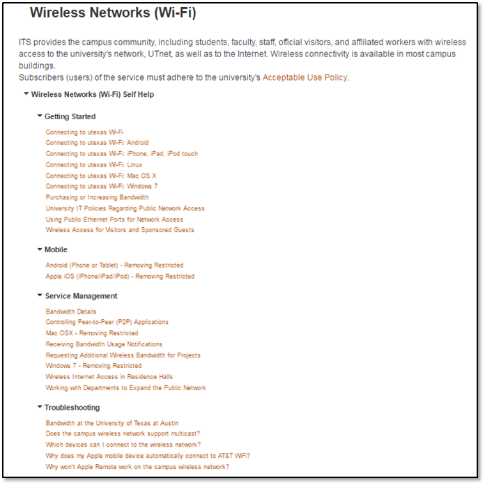 - Articles will be collapsed under categories; click the arrows to expand each category to display all related knowledge articles