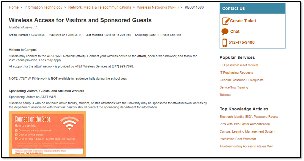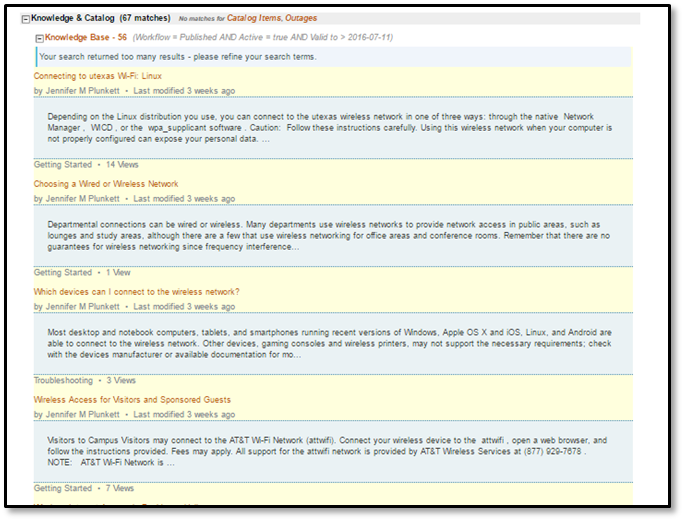 You can search for knowledge articles in ServiceNow using either the Global Search or Through the Service Catalog. Please see below for information on both methods.