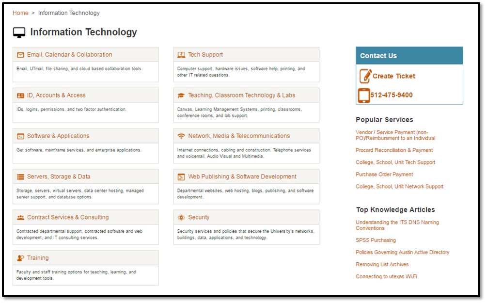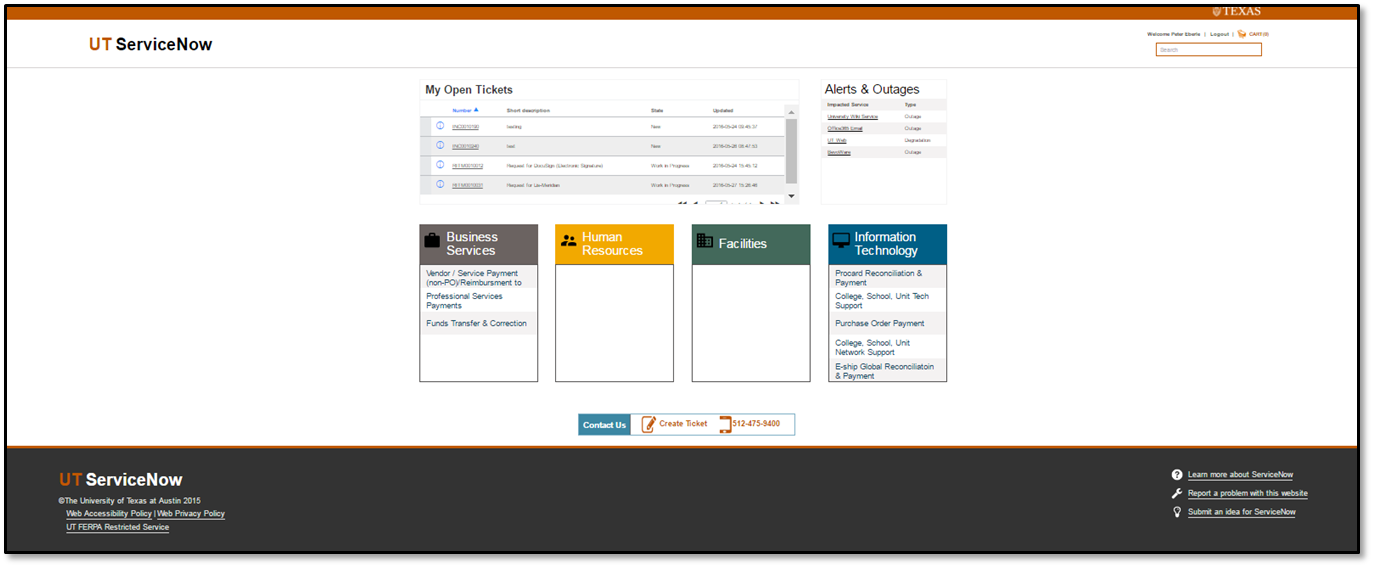 - Select the appropriate catalog (IT, Facilities, Human Resources, or Business Services)